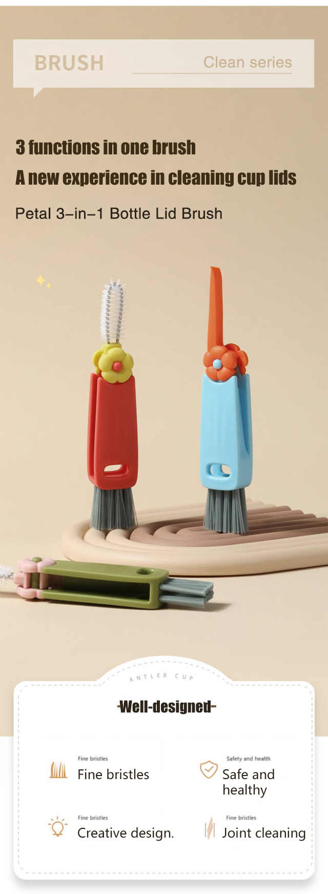Three-in-one multifunctional flower bottle brush
