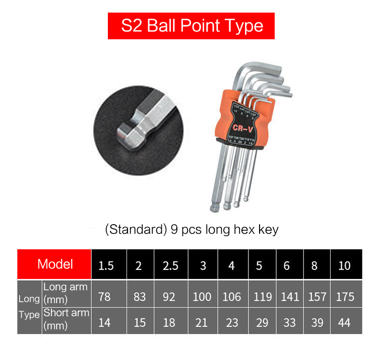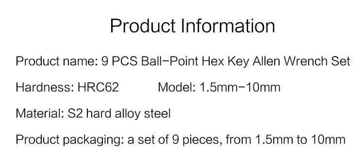 9 PCS Ball-Point Hex Key Allen Wrench Set